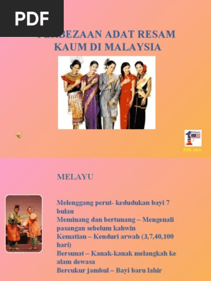 Scribd adalah situs bacaan dan penerbitan sosial terbesar di dunia. Kepentingan adat resam di dalam hidup masyarakat tidak kira apa bangsa sekalipun tidak dapat dinafikan. Adat tersebut bermula dari dalam perut ibu kelahiran perkahwinan sehinggalah kematian terdapat di dalam hidup semua masyarakat di malaysia. Mengikut jabatan penerangan malaysia biasanya adat resam kita berlaku sekitar tiga peristiwa penting dalam hidup iaitu kelahiran perkahwinan dan kematian.