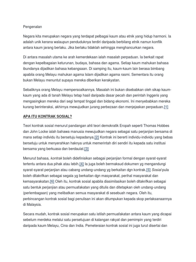 Beberapa filsuf yang memakai teori kontrak sosial. Mereka berbeda soal bagaimana siapa mengambil kewenangan dan. Kontrak sosial dalam konteks politik malaysia difahamkan sebagai pendalaman mengenai perlembagaan negara tersebut di mana dikatakan adanya satu persetujuan di kalangan pemimpin atau kumpulan elit tertentu dan merupakan secara beri gnti atau quid pro quo melalui perkara 14 1100000 yang berkenaan dengan pemberian kewarganegaraan malaysia kepada orang orang bukan melayu dan perkara 153 yang. Apa itu kontrak sosial masyarakat malaysia.