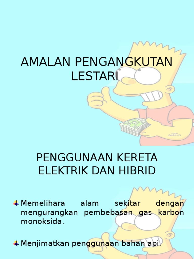 Cadangan bagi menerapkan amalan pengangkutan lestari dalam kalangan rakyat malaysia. Contoh karangan kerajaan telah berusaha untuk memastikan sistem pengangkutan awam berjalan lancar. Oleh itu kejayaan program kitar semula banyak bergantung kepada kerjasama yang erat dalam kalangan semua pihak. Kuat kuasa undang undang tindakan tegas perlu diambil terhadap pemandu bas yang melakukan kesalahan yang berulang ulang. Lestari penggunaan kereta elektrik dan hibrid.