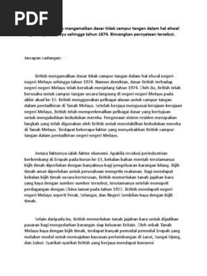 Campur tangan british di tanah melayu pdf. Campur tangan british secara langsung di negeri negeri melayu telah mengakibatkan sistem politik dan ekonomi tempatan mengalami perubahan yang ketara. Bijih timah amat diperlukan dalam perusahaan mengetin makanan dan minuman. Kuasa eropah berminat untuk menguasaai tanah melayu. Golongan pemerintah terdiri daripada raja sultan keluarga dan kerabat diraja pembesar pentadbir serta ulama istana.