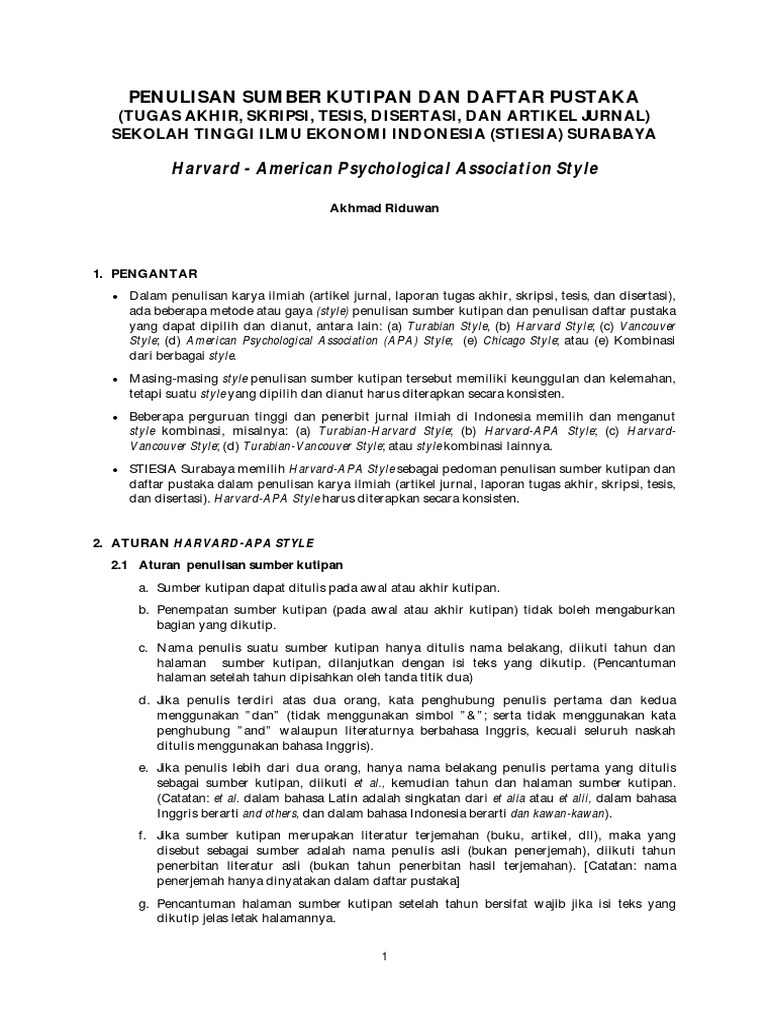 Cara Menulis Daftar Pustaka Dari Skripsi Apa Style