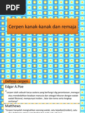 Jam dinding menunjuk angka 4. Disamping itu kesusastera kanak kanak juga semakin mendapat tempat dalam kalangan kanak kanak. Kesusasteran kanak kanak ini muncul daripada kisah folklore contohnya kisah yang telah dikumpulkan iaitu aesop s fables dan diterbitkan pada tahun 1484. Cerpen pendidikan menjelang ujian tengah semester deni duduk termenung di meja belajarnya.