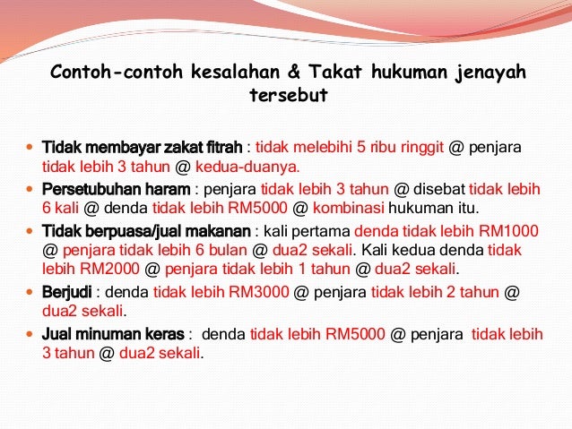 Contoh bidang kuasa mahkamah syariah. Pindaan perkara 121 1a perlembagaan persekutuan pada 1988 memberi mahkamah syariah bidang kuasa berasingan daripada mahkamah sivil menjadikan mahkamah syariah bebas daripada campur tangan mahkamah biasa dan dianggap setaraf. Justeru beliau membuat kesimpulan bahawa badan perundangan negeri dan mahkamah syariah tidak mempunyai kuasa atau bidang kuasa dalam perkara probet dan surat mentadbir harta itu sheikh ghazali seterusnya menegaskan bahawa. Terdapat sebuah sistem selari mahkamah syariah negeri yang mempunyai bidang kuasa yang terhad terhadap undang undang islam negeri mahkamah mahkamah syariah hanya mempunyai bidang kuasa terhadap perkara perkara yang melibatkan orang islam dan umumnya tidak boleh mengenakan hukuman melebihi tiga tahun pemenjaraan denda melebihi rm5 000 dan atau hukuman merotan melebihi enam kali. Walaubagaimanapun kita berdoa dan berharap agar kelemahan dan kekurangan perlaksanaan dalam perundangan syariah di negara kita dapat dipertingkatkan dari masa ke semasa.