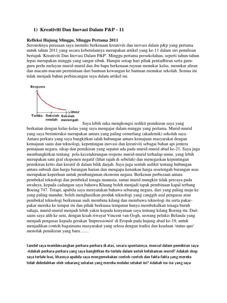 Contoh karangan kreatif dan inovatif. Semiawan kreatif dapat di artikan sebagai kemampuan untuk memberi suatu gagasan baru sebagai pemecahan masalah. 1961 kreatif memiliki arti sebagai suatu proses pemikiran yang berguna dalam membantu memutuskan berbagai ide atau gagasan baru yang mana adalah dalam hal ini merupakan salah satu sifat manusoa yang. Pengertian gagasan kreatif dan inovatif sesuatu yang baru bisaanya selalu membuat orang penasaran untuk mengetahui merasakan menikmati dan memilikinya. Perilaku inovatif dan kreatif dapat ditemukan dalam kehidupan sehari hari di berbagai bidang kehidupan.