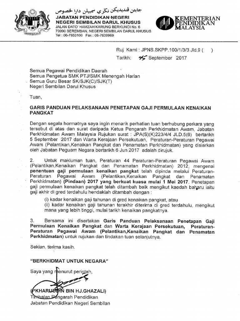 Garis panduan pelaksanaan penetapan gaji permulaan kenaikan pangkat pada 18 9 2017 jumlah. 1 mei 2017 pekeliling yang terbatal pekeliling perkhidmatan bil.