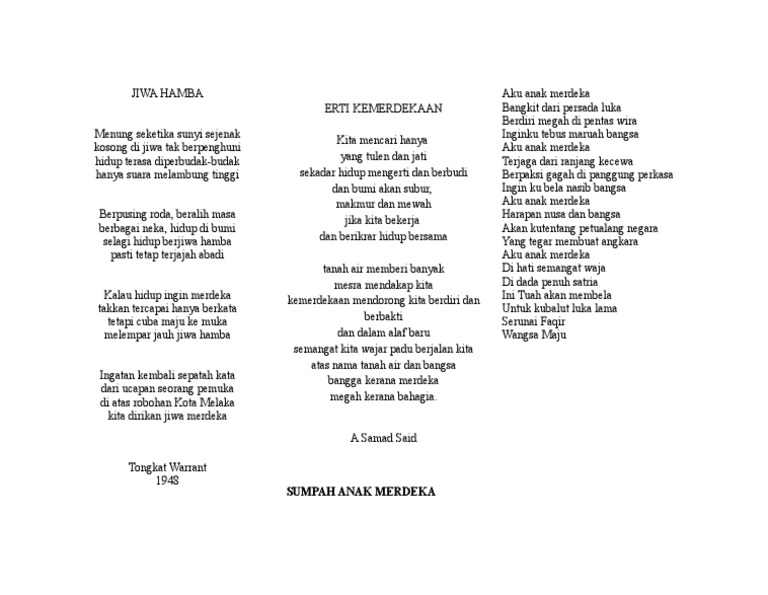 In may 1976 he was named by malaysia literature communities and many of the country s linguists as the pejuang sastera literary exponent receiving within the following decade the 1979 southeast asia write award and in 1986 in appreciation of his continuous. Hidup bersama puisi datuk a. Dan kita ikhlas berjanji untuk bermaruah tenang dalam segala uji cabar dan debar.