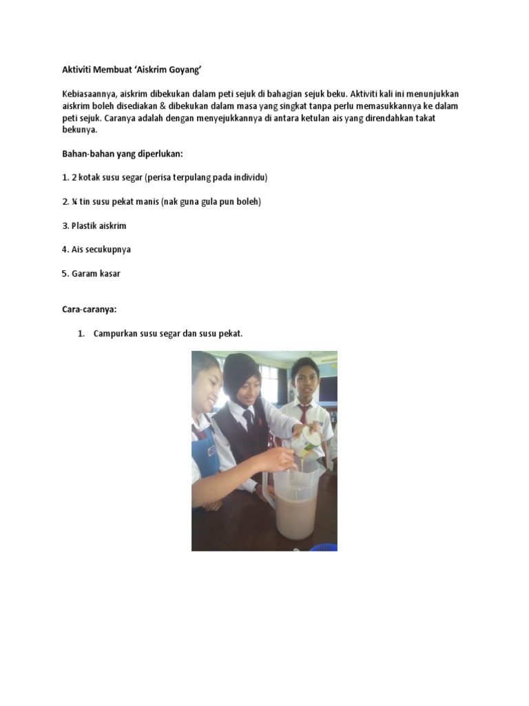 Proses aiskrim goyang google image jangan pelik jika anda berkunjung ke negara yang memiliki salji ketika salji yang tebal mereka menyembur air garam untuk mempercepatkan proses pencairan salji. Cara membuat aiskrim paddlepop duration. Aktiviti membuat aiskrim goyang kebiasaannya aiskrim dibekukan dalam peti sejuk di bahagian sejuk beku.