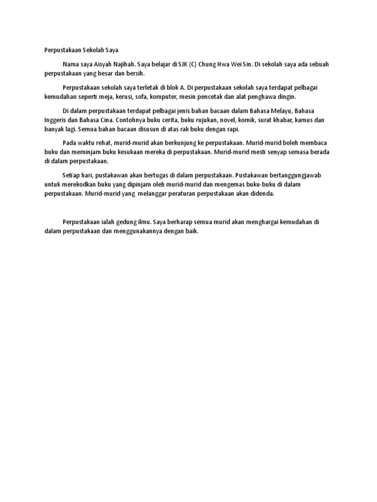 Faedah berkunjung ke pusat sumber contoh karangan upsr perpustakaan ialah suatu tempat terkumpulnya bahan bahan bacaan. Soal revisi sd smp sma. Perpustakaan merupakan sebuah tempat untuk membaca buku ilmiah buku cerita majalah dan sebagainya. Salah satunya ialah saya akan memastikan pusat sumber sentiasa berada dalam keadaan kemas dan menarik.