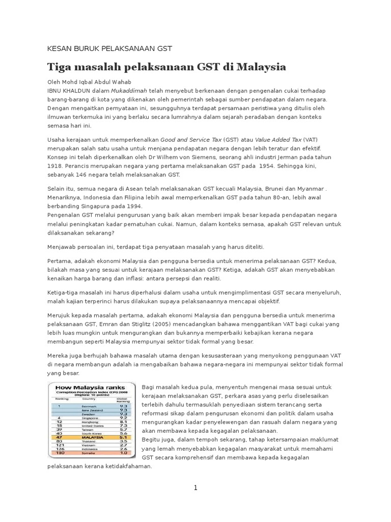 Kebaikan gst terhadap ekonomi negara. Bagi peniaga yang mempunyai hasil jualan melebihi rm 500 ribu setahun mereka berhak untuk membuat tuntutan kembali 6 kenaikan kos barangan melalui kerajaan. Scribd is the world s largest social reading and publishing site. Dari zaman falsafah ke zaman renaissance bertukar pula ke zaman industri dan zaman atom kini sampailah pada hari ini. Huraikan pendapat anda tentang kebaikan teknologi maklumat dan komunikasi ict kepada masyarakat dan negara.