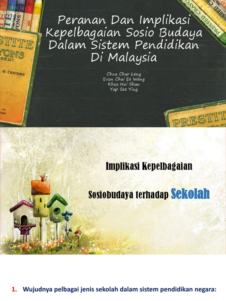 Bahasa cina atau bahasa tamil digunakan sebagai bahasa pengantar. Sebelum sesi persekolahan 2013 bermula saya berminat untuk mengkongsikan dengan anda semua jenis jenis sekolah yang ada di malaysia ni. Kepelbagaian aliran pendidikan pada hari ini adalah implikasi daripada zaman penjajahan yang mengamalkan prinsip pecah dan perintah. Melayu cina india kadazan bajau murut iban dayak dan orang asli merupakan antara etnik terbesar yang mewarnai kehidupan berbeza dalam satu kesatuan bangsa malaysia.