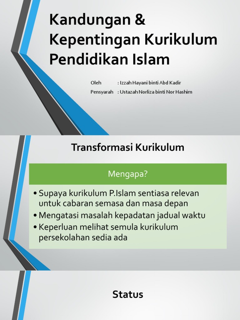 Kepentingan dan kelebihan kurikulum pendidikan islam di malaysia. Kurikulum ini dikenali dengan nama rasminya sebagai kurikulum bersepadu dini atau dengan panggilan mesranya kurikulum dini yang dilaksanakan di sekolah sekolah agama di malaysia termasuk sekolah agama bantuan kerajaan sekolah agama negeri dan sekolah agama rakyat. Pusat perkembangan kurikulum sentiasa merangka kurikulum pendidikan di malaysia dari semasa ke semasa mengikut aliran tinggi. Aktivitas serta kegiatan pendidikan yang berlakupada kekuasaan raja melaka yang pertama yaitu parameswara kemudian dikenali sebagai megat iskandar syah. Aliran pendidikan yang berbeza adalah berasaskan kepada fahaman ideologi dan kepercayaan yang pelbagai di negara ini.