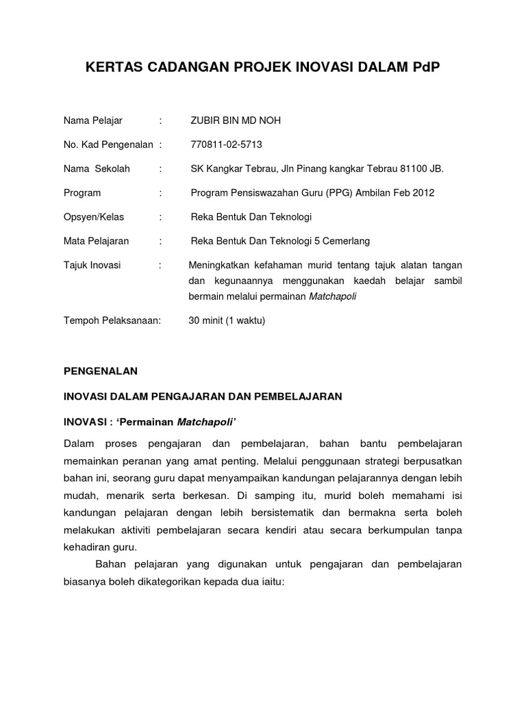 Kertas cadangan projek inovasi dalam.