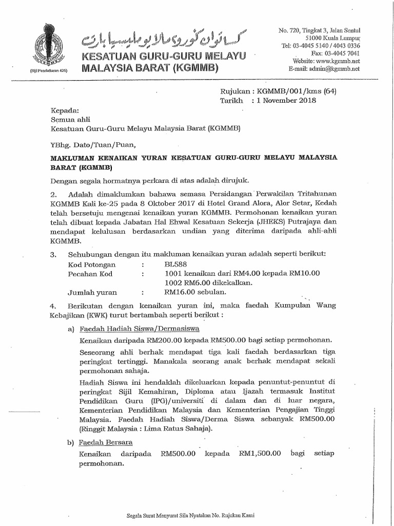 Kesatuan guru guru melayu malaysia barat hadiah siswa. Drop down menu 2015 2018 kesatuan guru guru melayu malaysia barat. Pinjaman peribadi maksima rm 100 000 oo tanpa penjamin. Kesatuan guru guru melayu malaysia barat kgmmb dan. Pihak kgmmb akan membiayai kos guaman cikgu noor idzahril bagi berhadapan dengan tuduhan di bawah akta 323 kanun keseksaan di mahkamah jawi pada hari selasa 9 januari 2018.