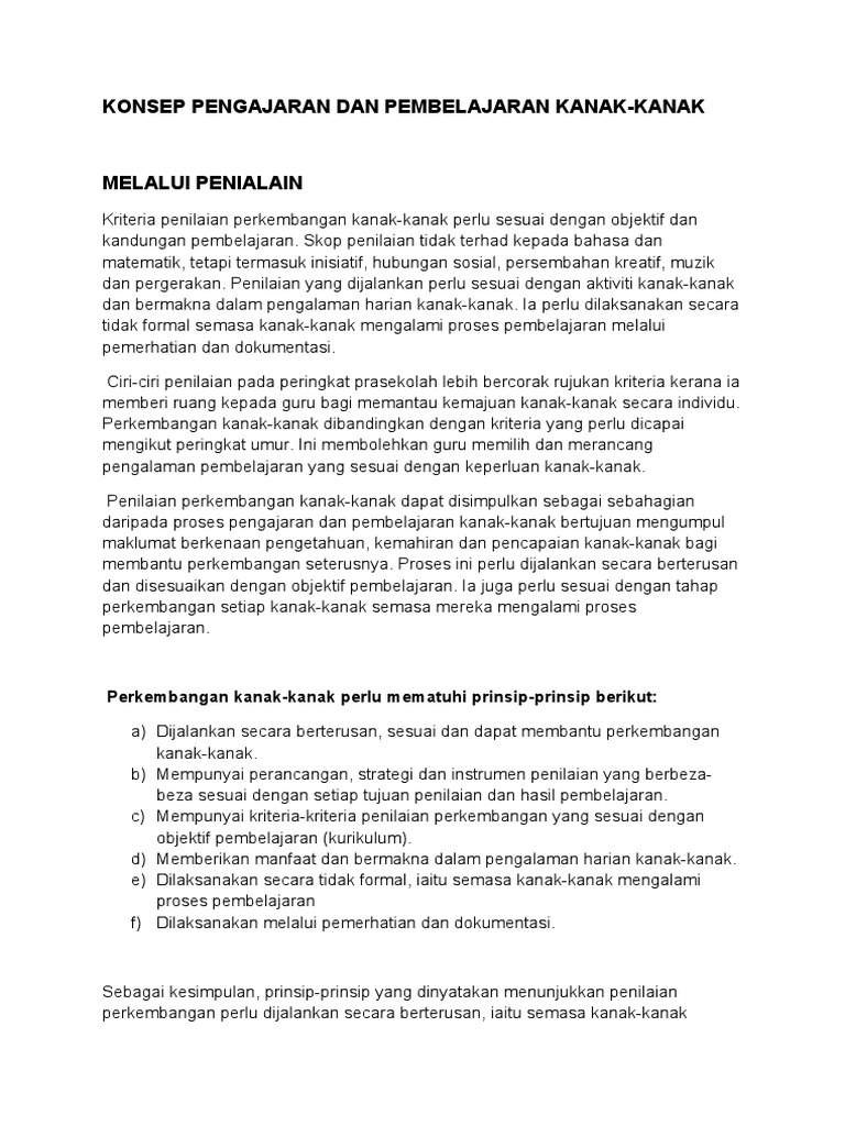 Konsep Pengajaran Dan Pembelajaran Kanak Kanak