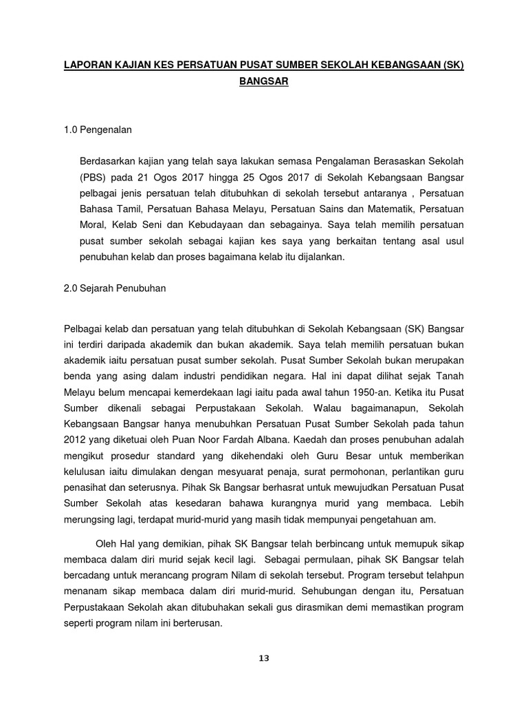 Laporan kajian kes kelab taman kitar semula sekolah kebangsaan kedai buloh 2 1 0 pengenalan berdasarkan kajian yang telah saya lakukan semasa pengalaman berasaskan sekolah pbs pada 12 mac 2017 hingga 16 mac 2017 di sekolah kebangsaan kedai buloh 2 pelbagai jenis persatuan telah ditubuhkan di sekolah tersebut antaranya kelab taman kitar semula kelab seni dan kebudayaan kelab komputer dan.