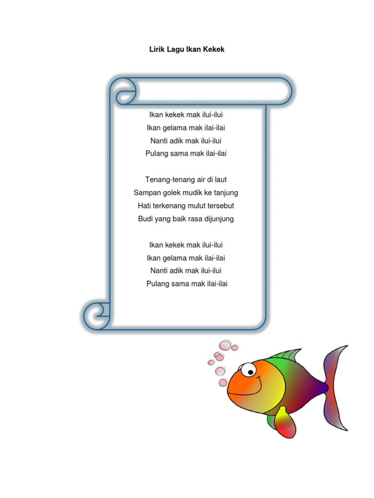 Ikan kekek mak ilui ilui. Lagu kanak kanak apr 6th 2015. 17 lirik lagu kanak kanak lirik 1 bangun pagi bangun pagi gosok gigi cuci muka terus mandi pakai baju minum susu salam ayah dan ibu. Mari bersama terkenang saat yang indah apabila jiwa kita terikat dengan cinta yang sempurna dan mimpi yang indah.