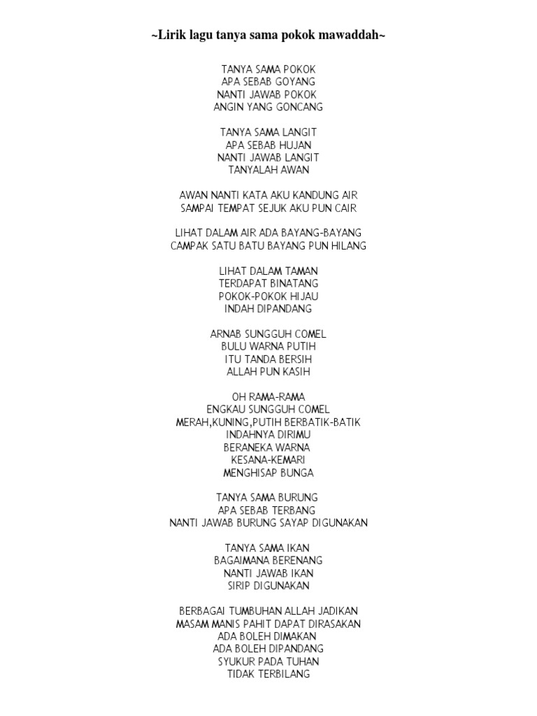 Lirik tanya sama pokok hazama. Luruh tanya sama pokok apa sebab goyang jawab angin yang goncang terbang burung terbang patah sayap diduga seandainya rebah kau masih ada. Lirik lagu pokok hazama mee uncle hussain tersesat malu bertanya tak tahu tak tahu k emana terlalu banyak alasannya. Tanya sama pokok apa sebab goyang 2x jawab angin yang goncang terbang burung terbang patah sayap di duga 2x seandainya rebah kau masih ada terlalu mahu dan mahu 2x terlupa apa yang perlu terlalu banyak alasanya duduk terdiam. Tanya sama pokok apa sebab goyang jawab angin yang goncang terbang burung terbang patah sayap diduga seandainya rebah kau masih ada terlalu mahu dan mahu terlupa apa yang perlu terlalu banyak alasannya.