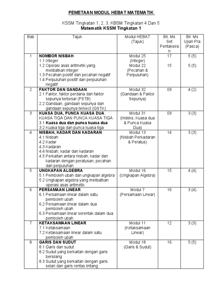 Modul hebat matematik 12 bahan subjek rbt tingkatan 1 13 download borang berkaitan 14 modul pembelajaran profil kepimpinan pemimpin sekolah. Modul hebat matematik email this blogthis. Transformasi sekolah 2025 ts25 2 0. Bagi subjek matematik ianya dimulakan dengan tingkatan 1 sahaja.