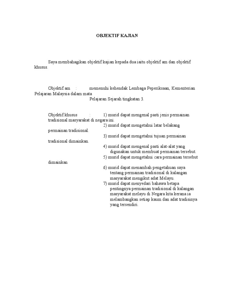 Untuk mengetahui sejauh mana sukan boleh memberikan manfaat yang amat besar terhadap aspek kemanusiaan sejagat yang melibatkan peranan individu masyarakat dan negara. Login to post answer. Di antara objektif tersebut adalah seperti untuk mengetahui lebih mendalam lagi tentang kegiatan ekonomi tradisional di malaysia.