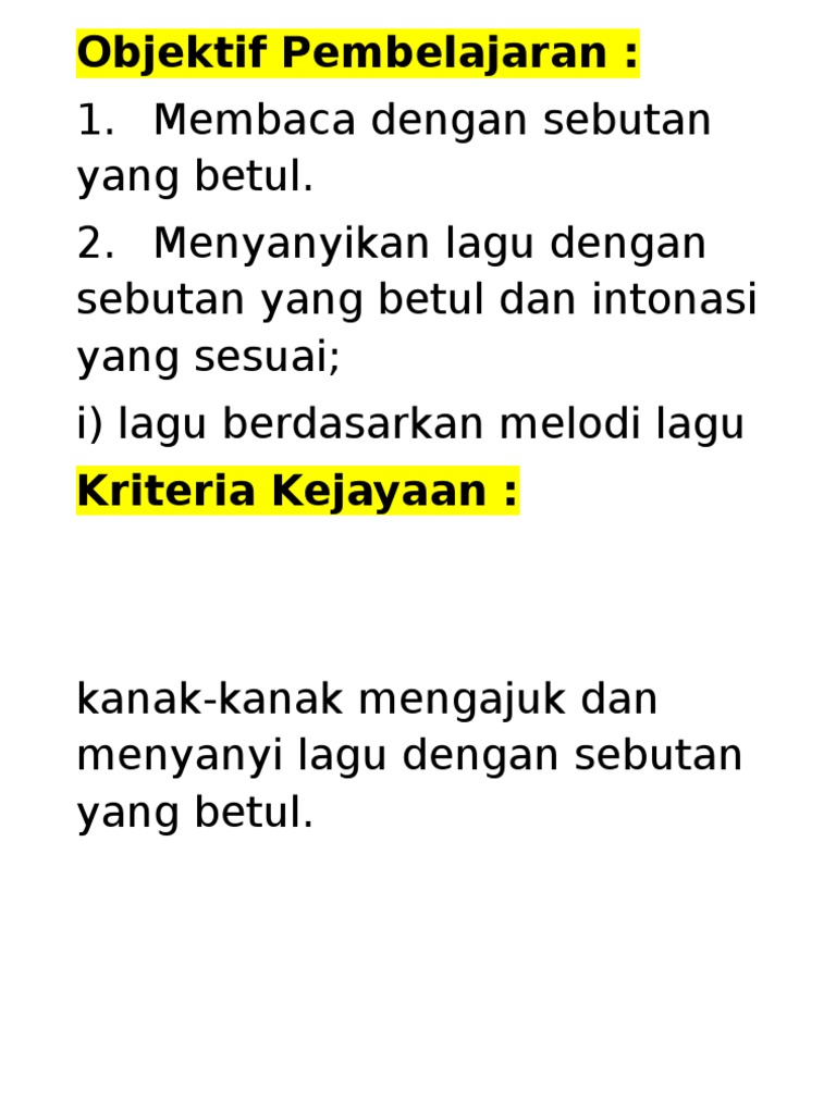 Objektif Pembelajaran Dan Kriteria Kejayaan