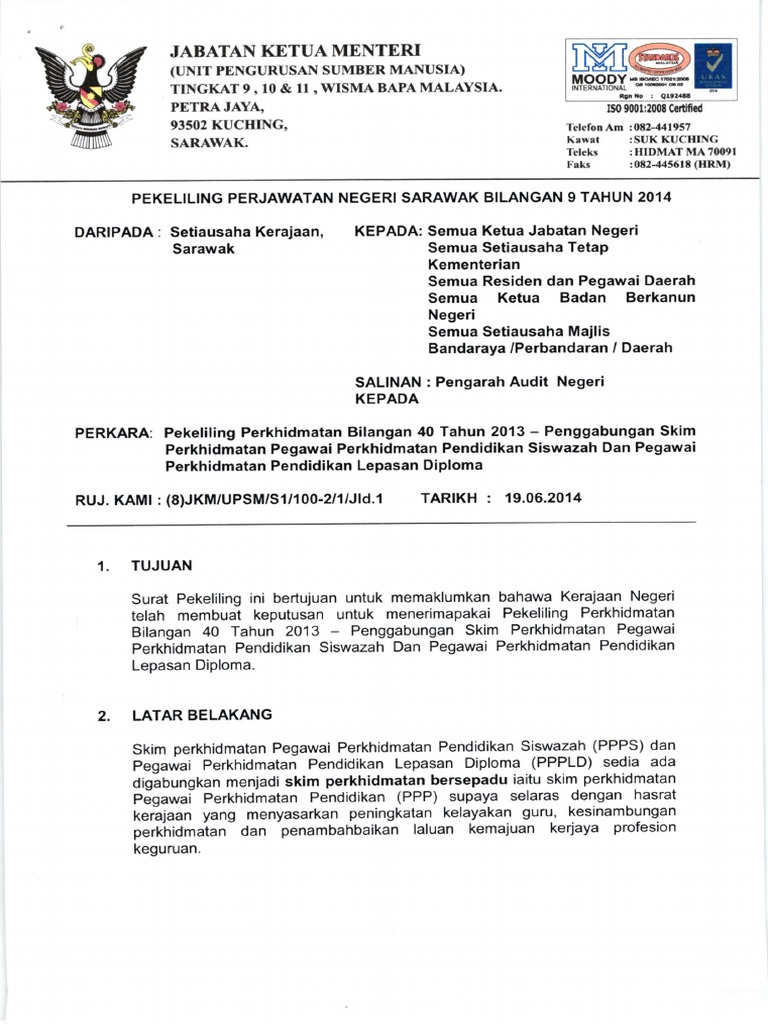 Kerajaan malaysia pekeliling perkhidmatan bilangan 40 tahun 2013 penggabungan skim perkhidmatan pegawai perkhidmatan pendidikan siswazah dan pegawai perkhidmatan pendidikan lepasan diploma tujuan 1.