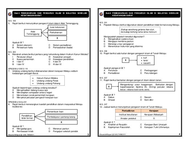 Pembaharuan dan pengaruh islam di malaysia sebelum kedatangan barat. Soalan esei dan struktur jawapan sejarah tingkatan 4 bab 8. Pengenalan agama islam yang lahir di semenanjung tanah arab telah tersebar ke merata dunia merangkumi sebahagian eropah asia selatan asia timur dan asia tenggara. Bab 8 pembaharuan dan pengaruh islam di malaysia sebelum kedatangan barat pengenalan 1. Soalan bab 8.
