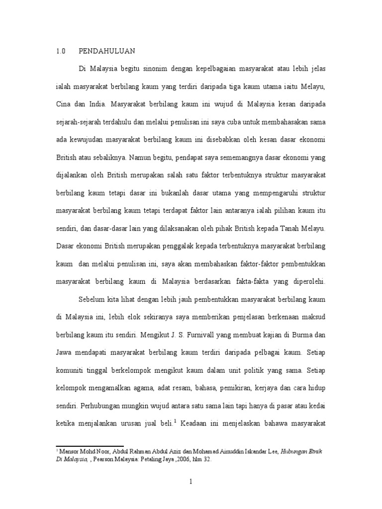 Pembentukan masyarakat majmuk yang berbilang kaum di malaysia pada abad ke 19 adalah kesan daripada kolonialisme yang mutlak. Buruh dari china yang berniaga dan bekerja di lombong tinggal di kawasan bandar. Pembentukan masyarakat berbilang kaum i orang melayu petempatan ramai di kawasan kampung dan sebahagiannya menetap di kawasan bandar dan pekan kegiatan mereka mengambil bahagian dalam sektor pertanian perikanan perniagaan perusahaan harta tanah perbankan dan menjadi ahli profesional dalam pentadbiran dan syarikat swasta ii orang cina petempatan ramai di kawasan bandar dan. Justeru itu kita seharusnya.