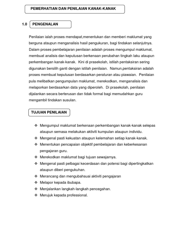 Pemerhatian Dan Penilaian Kanak Kanak Pdf