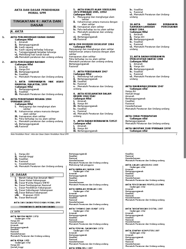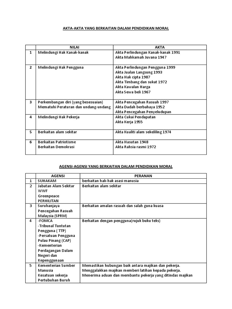 Pendidikan moral akta list. Tumbuhan nota tambahan sains 2014 2015 kemahiran hidup 2014 2016 peribahasa yang sering dijumpai. Pendidikan moral senarai fakta akta agensi. Akta dan dasar pendidikan moral tingkatan 4 dan 5 akta tingkatan 4 1. Pendidikan moral ialah mata pelajaran yang wajib bagi pelajar warganegara malaysia bukan islam yang menuntut di institusi pengajian tinggi swasta di negara malaysia di bawah subseksyen 43 1 akta 555 akta ipts.