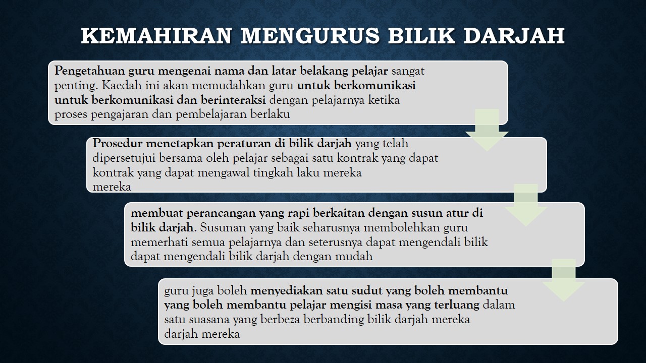 Penerbit fajar bakti sdn. Faktor faktor yang mempengaruhi corak dan suasana interaksi dalam bilik darjah lazimnya diklasifikasikan kepada tiga kategori iaitu faktor fizikal faktor kemanusiaan yang. Menurut mok soon sang 2008 guru yang kurang berpengalaman dan kurang tegas atas disiplin bilik darjah tidak akan mendapat penghormatan dan kepercayaan daripada murid murid. Kecekapan pengurusan bilik darjah seseorang guru berkait rapat dengan keberkesanan aktiviti pengajaran dan pembelajaran abdullah sani 2006.