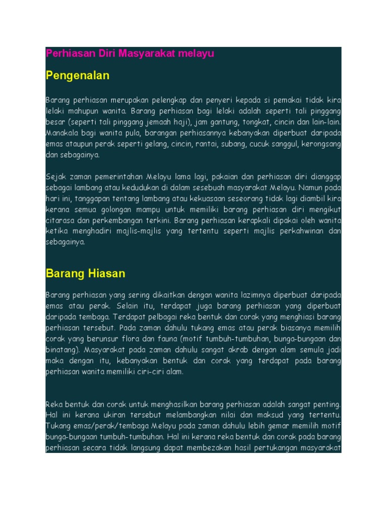 Sedangkan perhiasan wanita melayu umumnya berupa. Pakaian suku kaum rungus pakaian istiadat suku kaum rungus. Alat perhiasan diri ialah alat yang menjadi pelengkap kepada pemakaian kita.