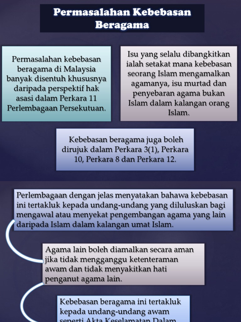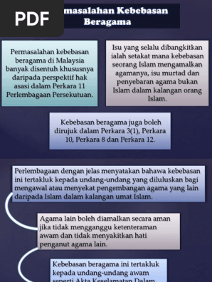 Agama bagi persekutuan 1 islam ialah agama bagi persekutuan. Perlembagaan persekutuan bahagian ii kebebasan asasi. Perlindungan daripada undang unda perbicaraan berulang perkara 8. Tetapi agama agama lain boleh diamalkan dengan aman dan damai di mana mana bahagian persekutuan 2 di dalam tiap tiap negeri selain negeri negeri yang tidak mempunyai raja kedudukan raja sebagai ketua agama islam di negerinya mengikut cara dan setakat yang diakui dan ditetapkan oleh perlembagaan negeri itu dan.