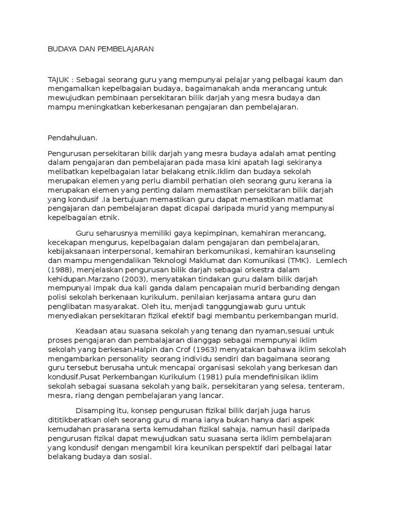 Persekitaran dan budaya sekolah. Persekitaran fizikal di sekolah merujuk kepada kemudahan dan peralatan yang dibekalkan di sekolah contohnya reka bentuk bilik darjah pencahayaan pengudaraan kebersihan bilik darjah dan sekeliling sekolah susunan perabot papan tulis sumber bahan pembelajaran bilik air perpustakaan dan sebagainya. Berdasarkan bab ini saya dapat mempelajari mengenai hubungan sekolah ibu bapa iaitu pibg dimana ibu bapa memainkan peranan dalam memberi sokongan berbentuk moral kepada pihak sekolah. Selain itu sekolah mestilah ada hubungan yang mantap dan akrab dengan ibu bapa dan masyarakat. Budaya sekolah merujuk kepada sejumlah nilai budaya praktis praktis keselamatan dan struktur organisasi di sekolah yang mempengaruhi dan memberi kesan kepada proses pembentukan tingkah laku dan keselamatan pelajar di sekolah.