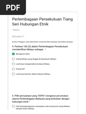 Bincangkan empat 4 cabaran yang boleh menjejaskan. Fasal 2 perkara 153 perlembagaan persekutuan malaysia memperuntukkan ydpa bertanggungjawab untuk melindung kedudukan istimewa orang melayu dan kaum bumiputera di sabah dan sarawak dengan menentukan perizaban kepada mereka seperti biasiswa bantuan dan keistimewaan keistimewaan pelajaran dana lain lain kemudahan pelajaran yang diadakan oleh kerajaan persekutuan. Menurut dalam pelembagaan malaysia bahawa islam adalah agama rasmi kepada negara ini tetapi amalan agama lain juga turut dibenarkan untuk dipraktis menurut muhammad raqib dan adnan 2014 119. Perlembagaan buktikan tiga 3 bentuk kerjasama antara pelbagai etnik di malaysia menjelang kemerdekaan.