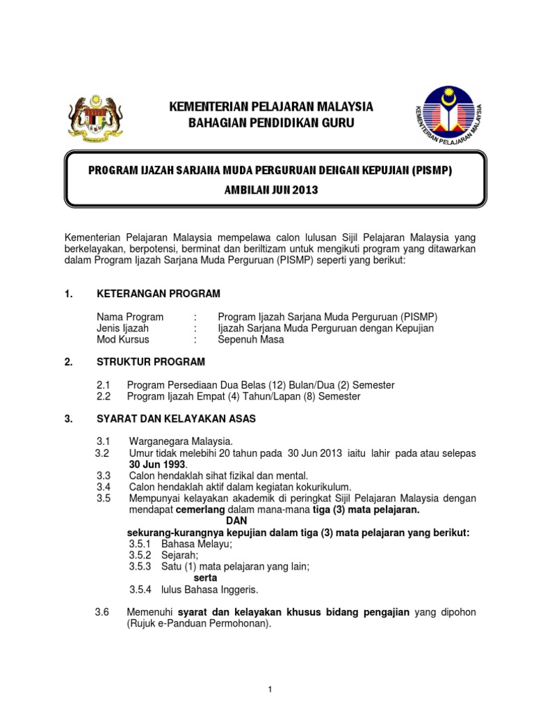 Bagi adik adik lepasan spm yang ingin menjadi cikgu sekolah inilah peluang anda. Calon mestilah lulus program persediaan ijazah sarjana muda perguruan ppismp yang dijalankan selama dua belas 12 bulan dua 2 semester dan akan diberikan sijil tamat ppismp serta ditawarkan mengikuti program ijazah sarjana muda perguruan pismp selama empat 4 tahun lapan 8 semester di ipg program ppismp dan pismp dijalankan menggunakan mod sepenuh masa. Sebagai prasyarat pelajar dikehendaki mengikuti kursus persediaan selama tiga. Program ijazah sarjana muda perguruan atau pismp 2020 telah dibuka semula bermula 24 februari sehingga tarikh tutup 31 mac.