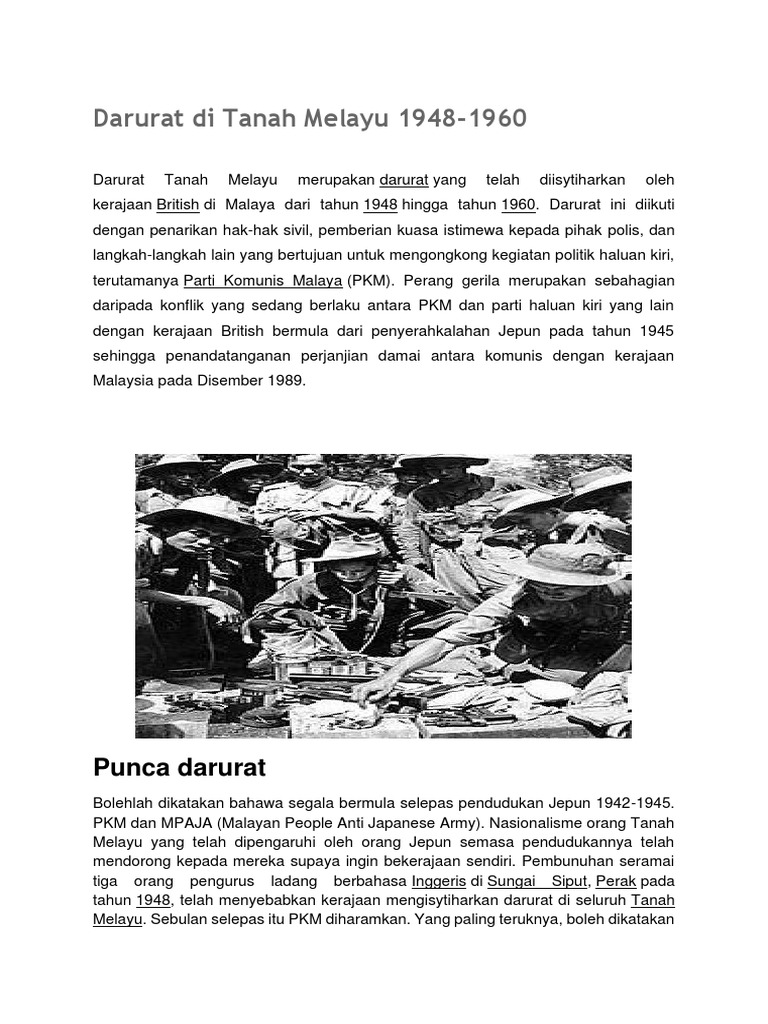 Punca darurat di tanah melayu. Pkm dan mpaja malayan people anti japanese army. Strategi pkm dan pemerintah di tanah melayu kajian ini memberi tumpuan kepada peristiwa darurat di tanah melayu yang bermula pada tahun 1948 hingga tahun 1960. Kemerdekaan ini tercapai adalah hasil perjuangan rakyat negara ini yang. Perang gerila merupakan sebahagian.