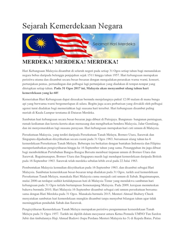 Setelah suruhanjaya reid selesai digubal dan seterusnya dikuatkuasakan malaysia sudah cukup sedia untuk mula berkerajaan sendiri. Melibatkan diri secara aktif semasa p p a jadilah pendengar yang baik semasa sesi penerangan guru atau rakan beri tumpuan dengar sepenuhnya jangan sekali kali mencelah perbuatan sedemikian. Kebebasan ini dimaksudkan kepada seseorang individu atau sesebuah negara. Persekutuan tanah melayu merdeka 31 ogos 1957.