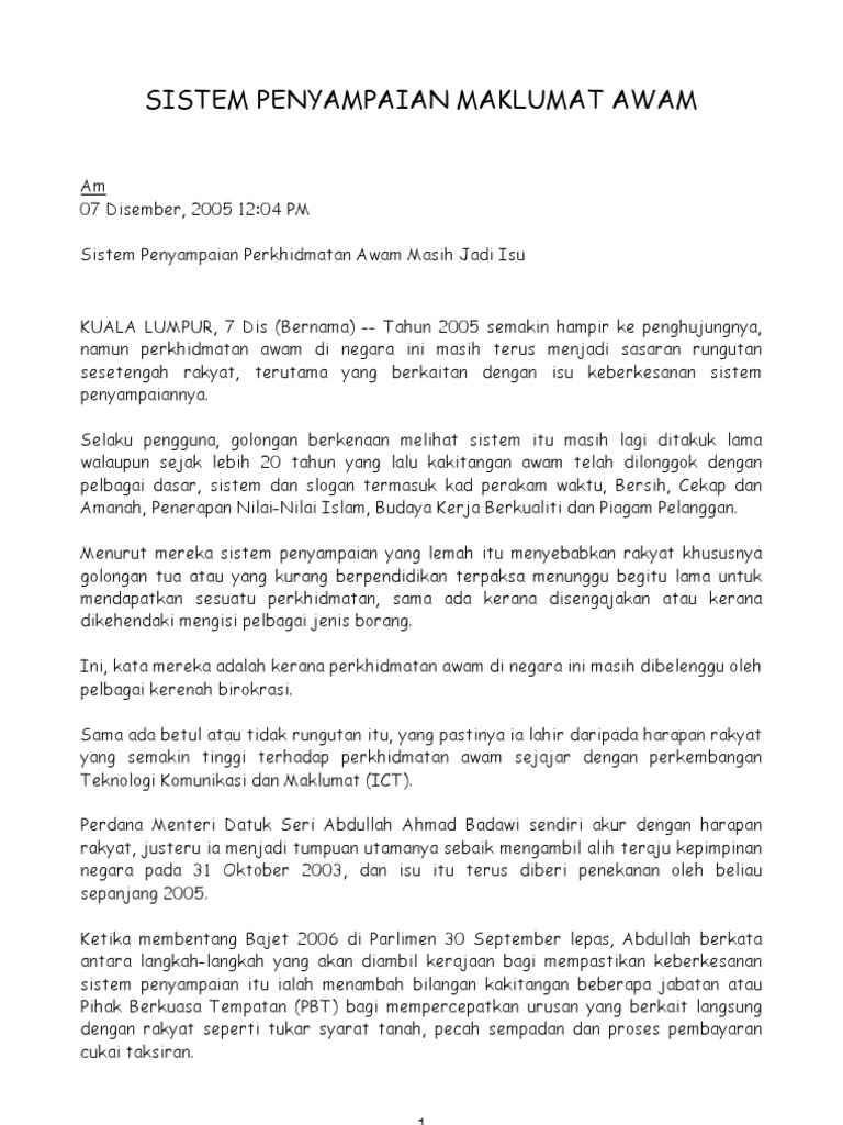 Masalah dalam sistem penyampaian perkhidmatan awam berikutnya ialah penyalahgunaan kuasa dan penyelewengan h i u. Panduan kerja sektor awam yang diperkenalkan sebagai sistem pengurusan strategik bagi memantapkan kualiti penyampaian perkhidmatan awam. Kerajaan giat memodenkan sistem penyampaian perkhidmatan secara digital melalui konsep kerjsama pelbagai agensi kerajaan untuk perkhidmatan yang lebih cekap dan pantas kata ketua setiausaha negara datuk seri dr ismail bakar. Sejak 5 dekad lalu ict merupakan pendaya utama dalam pembangunan sistem penyampaian perkhidmatan awam kepada rakyat.