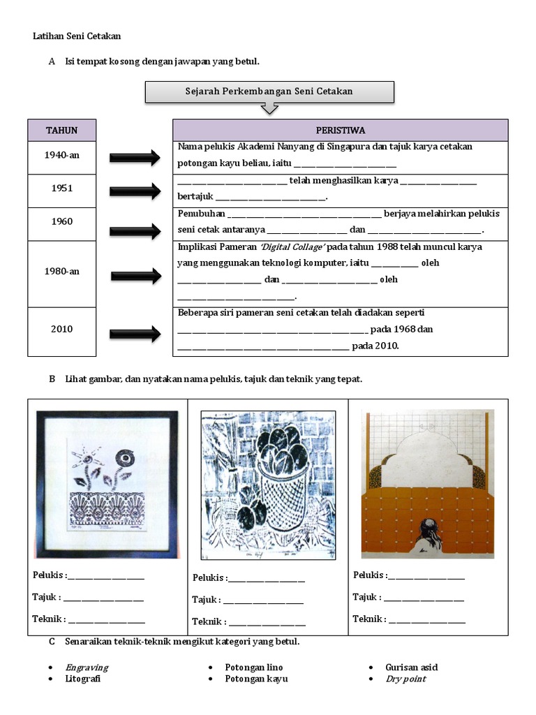 Seni cetakan tingkatan 2 draft. Pada 11hb nov 2010 psv daerah telah berjaya membuat bengkel seni bg membatu palajar score a dlm kertas 2. Pelbagai kertas ujian untuk pelbagai mata pelajaran sekolah menengah. Bahan yang terdapat di sini memenuhi keperluan pentaksiran berasaskan sekolah yang dilaksanakan secara menyeluruh mengikut prinsip bahawa semua mata pelajaran yang terkandung dalam kssm memainkan peranan yang penting bagi memenuhi keperluan jasmani rohani emosi dan intelek untuk.