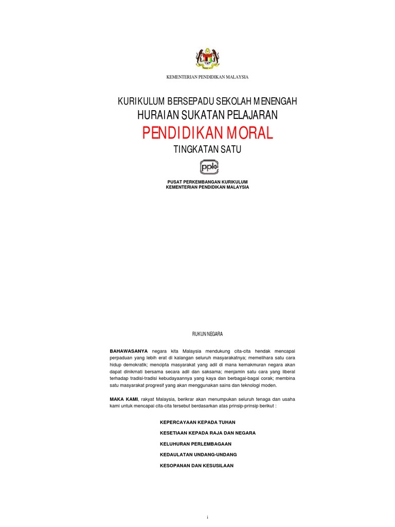 Sukatan pelajaran pendidikan moral kbsr 1 7 kesederhanaan bersikap tidak keterlaluan dalam membuat pertimbangan dan tindakan sama ada dalam pemikiran pertuturan atau perlakuan tanpa mengabaikan. Huraian sukatan pelajaran pendidikan moral kbsm kata pengantar huraian sukatan pelajaran ialah dokumen yang memperincikan kandungan sukatan pelajaran yang bertujuan untuk memenuhi cita cita murni dan semangat falsafah pendidikan kebangsaan dan menyediakan murid menghadapi arus globalisasi serta ekonomi berasaskan pengetahuan pada abad 21. Sukatan pelajaran pendidikan moral. Hsp pend moral f5.