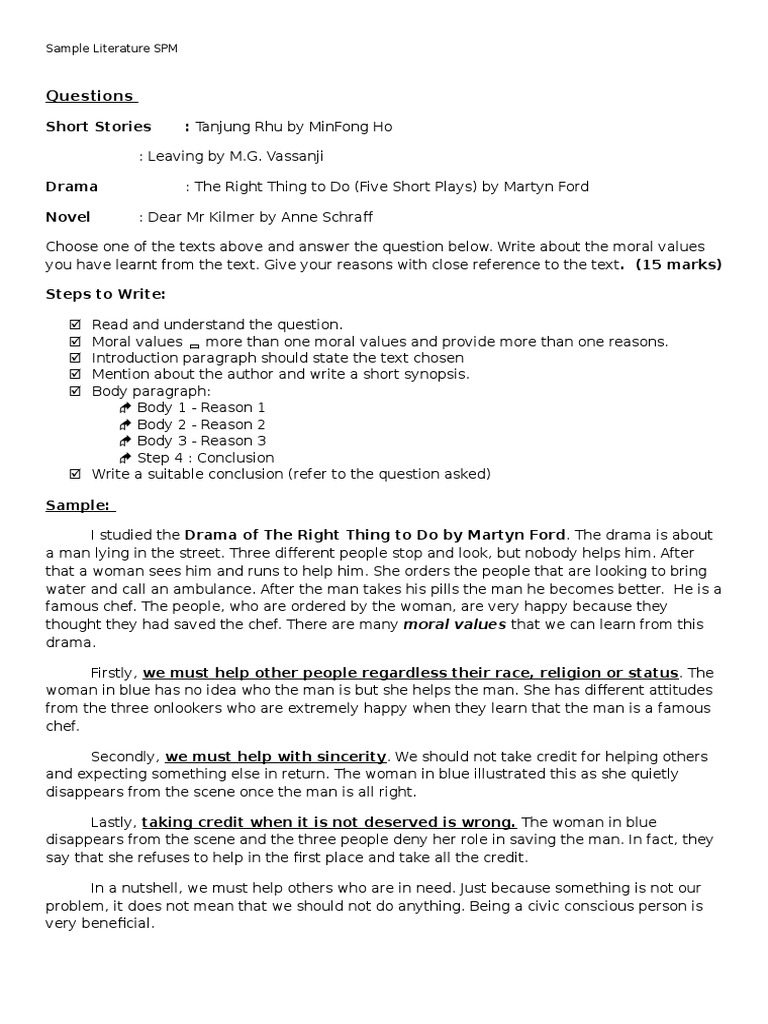 Literature form 4 poem. The right thing to do. This story is about the bond between a son mr li and his mother ah ma. Tanjong rhu leaving drama.