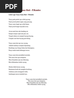 Tajuk dia tanya sama hati pernah kan. Dia ubah lirik and guna. Lirik lagu tanya sama hati p ramlee lyrics tanya pada pokok apa sebab goyang nanti jawab pokok angin yang goncang tanya sama langit apa sebab hujan nanti jawab langit tanyalah awan.